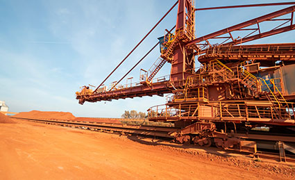 Aluminium Oxid Stade GmbH (AOS) processes around two million tons of bauxite every year. Before processing, the material is stored in a large heap. (Source: igus GmbH)