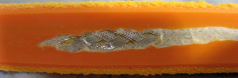 Outer jacket materials that are not optimized reach their limits quickly here. The picture below shows the clear consequences of incorrect cable selection. The outer sheath is worn down to the screen. If it has already come this far, this significantly endangers the electrical safety and function of the application.