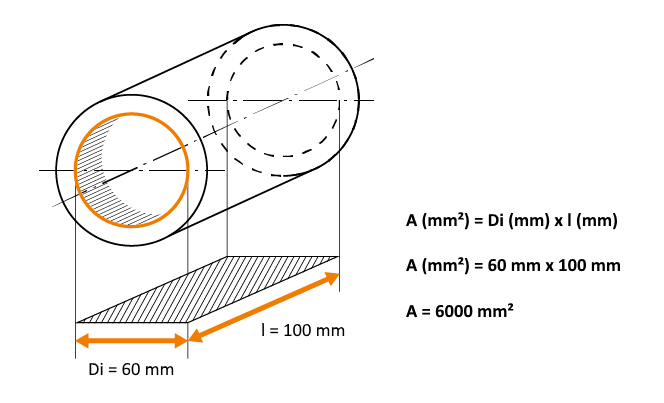A (mm²) = inside diameter (mm) x bearing length (mm)